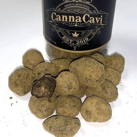 Canna Cavi Moon Rocks are highly potent cannabis nugs made by taking premium flower, coating it in concentrated cannabis oil, and rolling it in kief, creating a dense, infused product that hits much harder than regular weed.