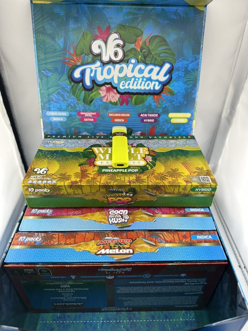 “V6 Gelato Edition” 2 g vapes focus on gelato‑inspired strains with creamy, dessert‑like notes layered over fruit and gas.
